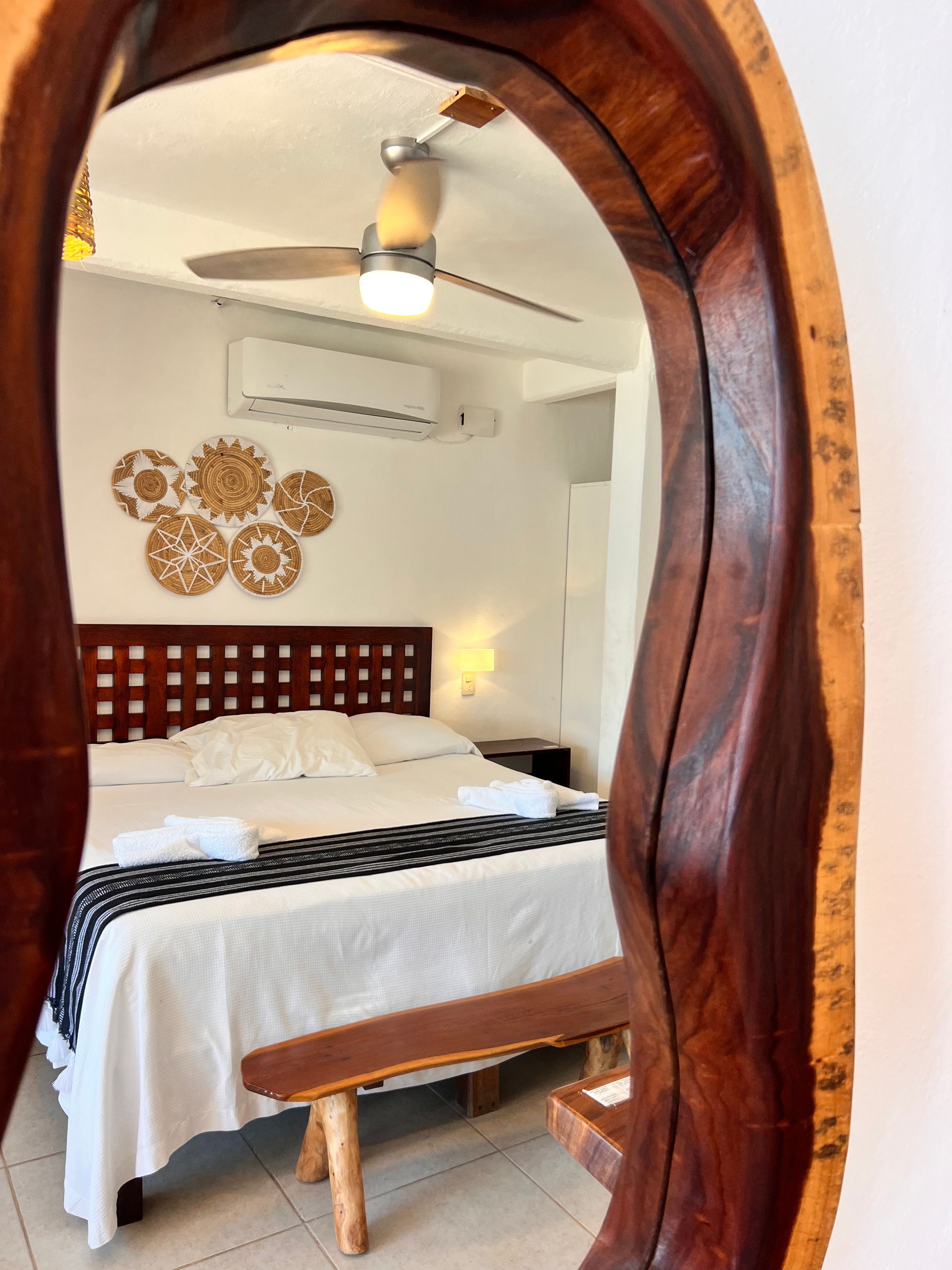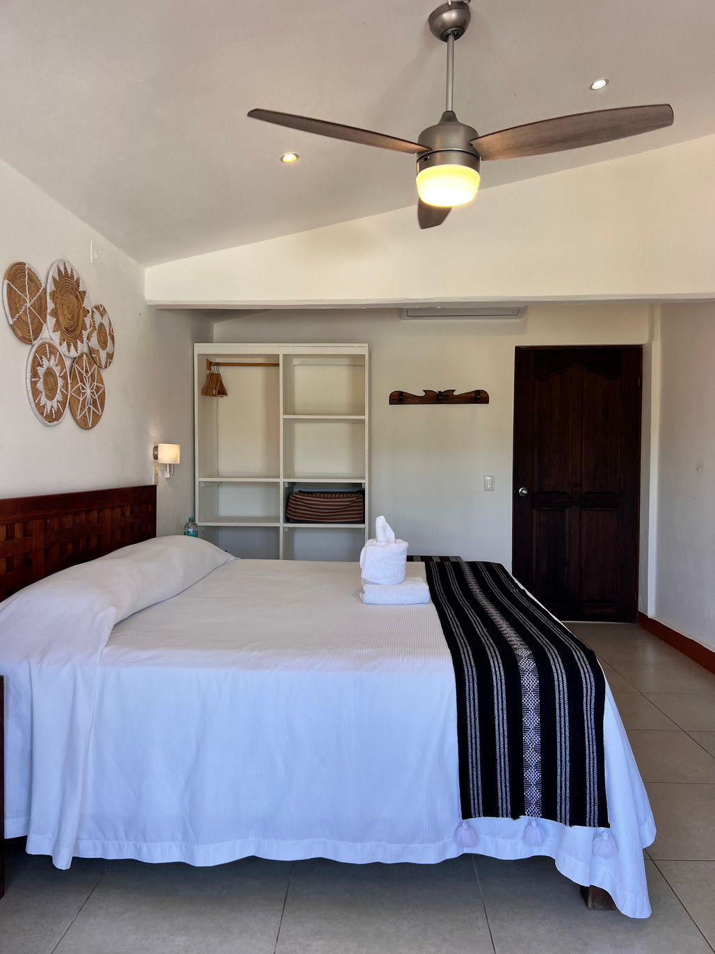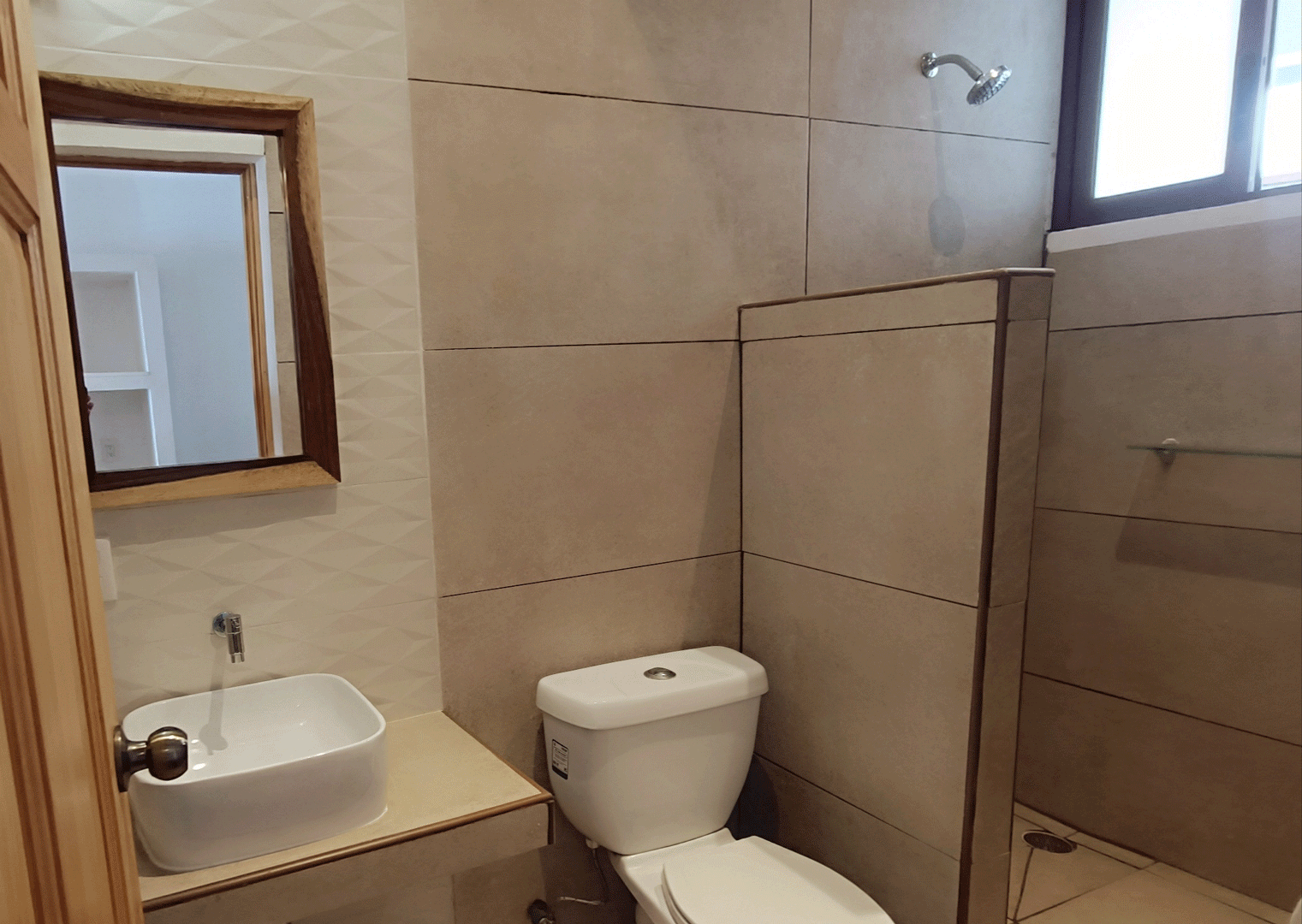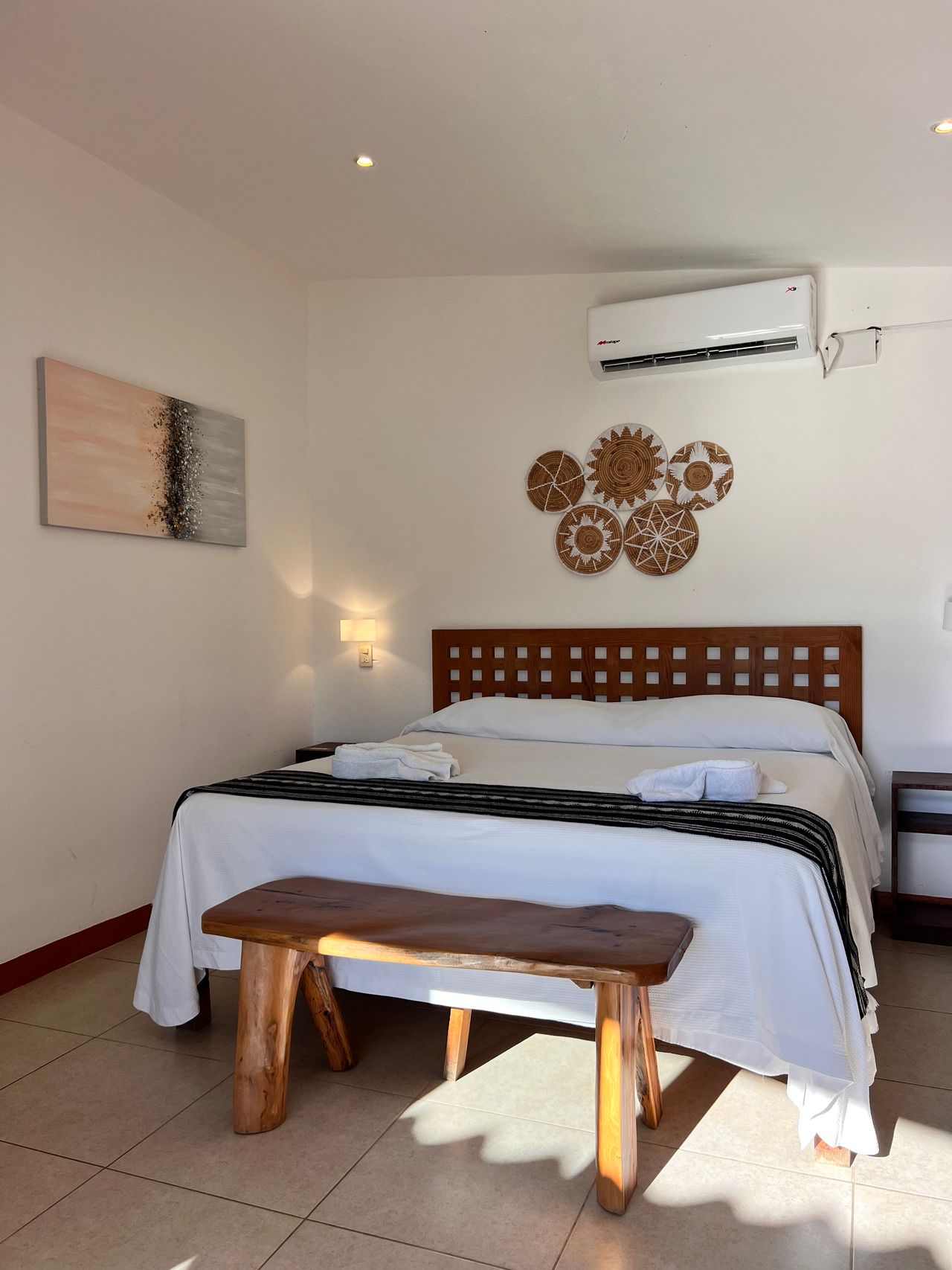 1 cama King size, Aire acondicionado, baño privado con agua caliente, ventiladores caja electrónica de seguridad, wifi, limpieza diaria, toallas, balcón con 1 hamaca sin vista al mar. NO cuenta con tv ni cocina. Se ubica en el segundo nivel.